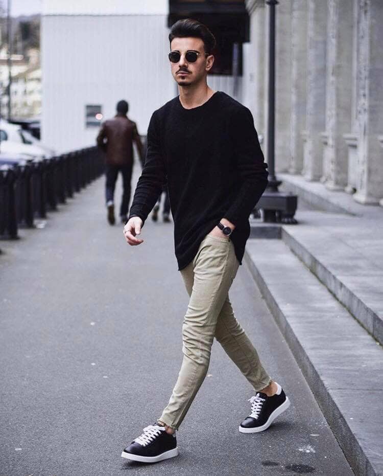 Áo len mix cùng quần kaki trang trọng và thu hút