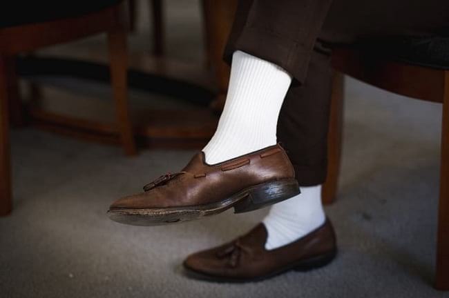 Bạn nghĩ rằng đó không phải là vấn đề lớn. Sự thật là mọi người đều chú ý đến nó. Quy tắc để phù hợp với màu sắc của vớ không nhất thiết phải là giày. Nếu bạn đang mặc denim thì vớ thể thao màu trắng là okay.